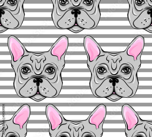 Dog Seamless Pattern French Bulldog Vector Head Puppy Pet