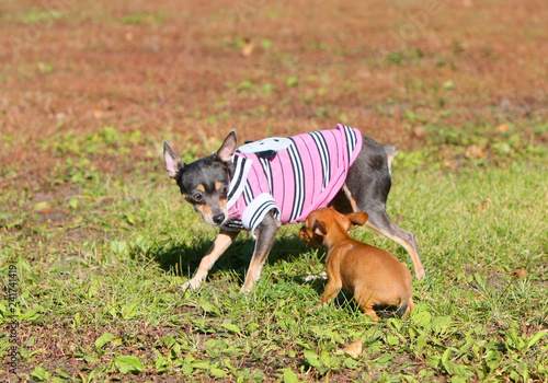 Dogs Two Bull Terrier Russkiy Toy Animals Wallpapers