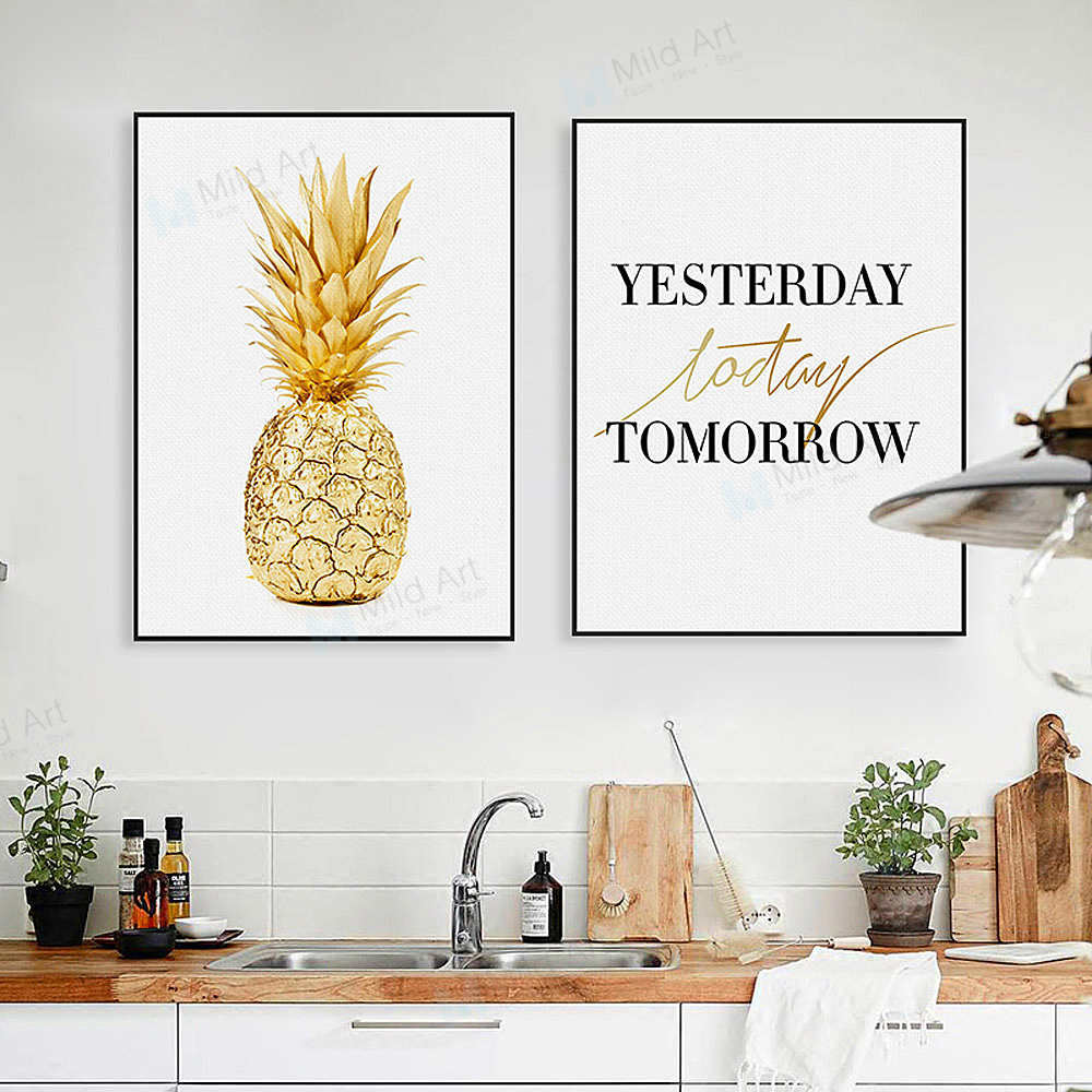 Modern Minimalist Life Quotes Gold Pineapple Posters
