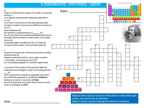 The Periodic Table Crossword Science Starter Keywords Activity Ks3 Gcse Cover Homework