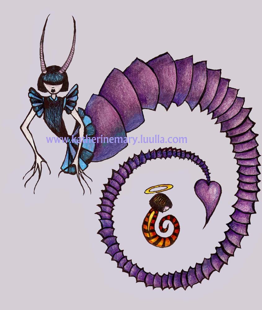 Fantasy Art Print 5 X 7 Mother And Child Gothic Goth Creepy Spooky Scorpion Devil Angel Mythological Creature Illustration