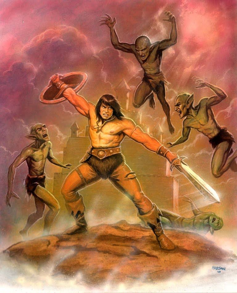 Peter Habjan Art Conan The Barbarian Fighting Goblins