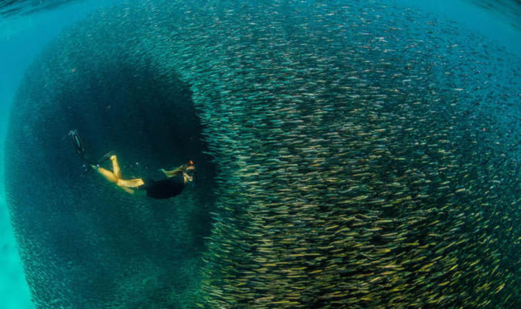 Hundreds Of Thousands Of Fish Create A 100 Ft Wide Vortex