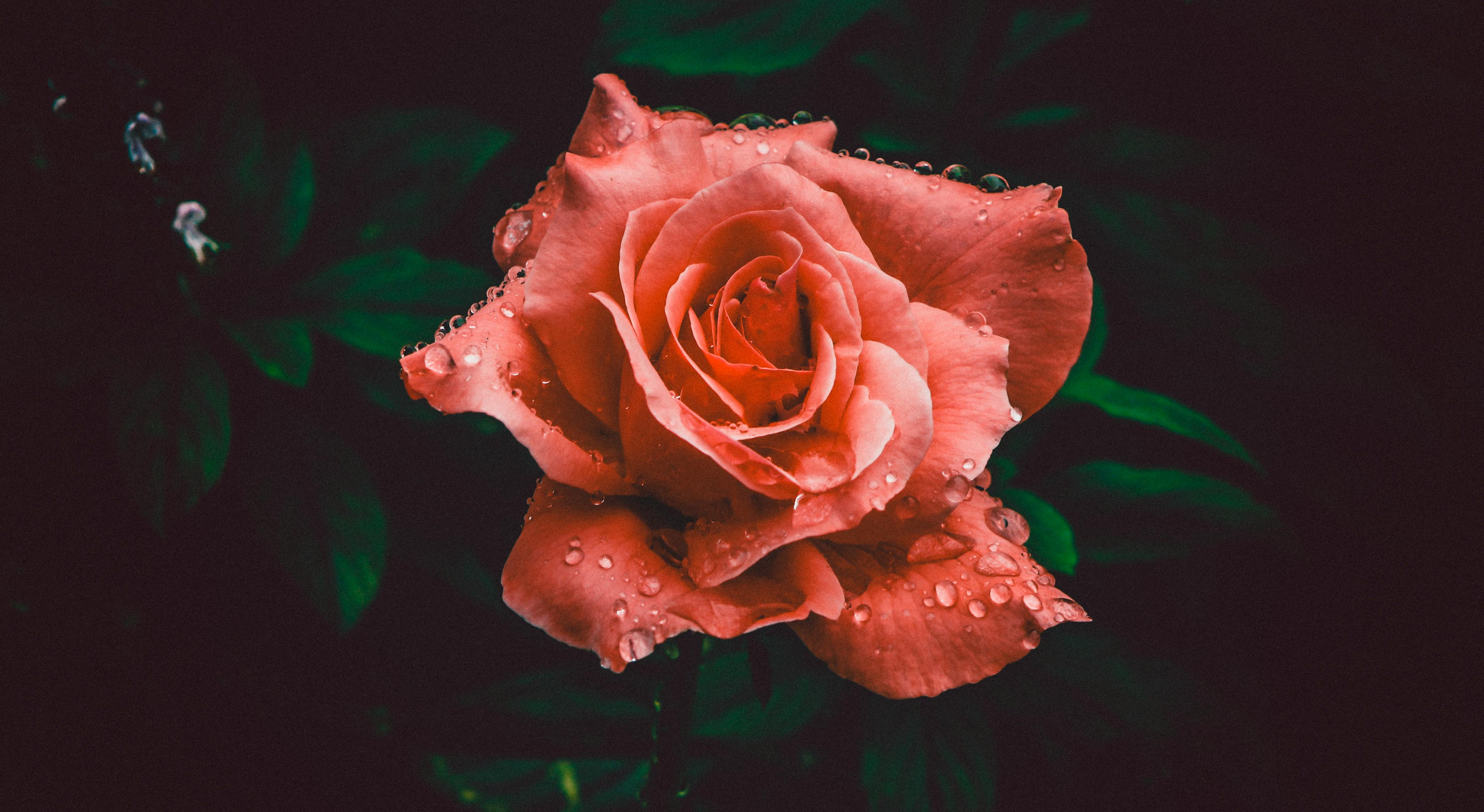 Close Up Photography Of Red Rose Flower With Water Drops
