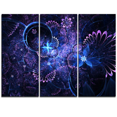 Designart Dark Blue And Pink Fractal Flowers Largefloral Wall Art Triptych Canvas