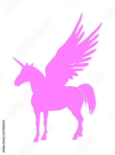 Cute Magic Pink Unicorn Pegasus Vector Silhouette Isolated