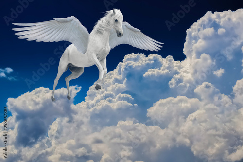 Pegasus Winged Legendary White Horse Flying With Spread