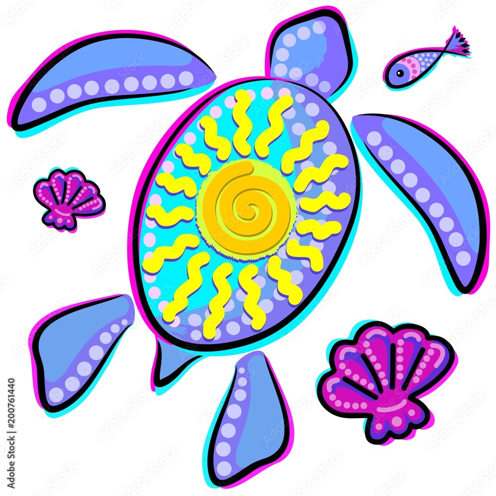 Canvas Prints Sea Turtle And Sun Abstract Glitch