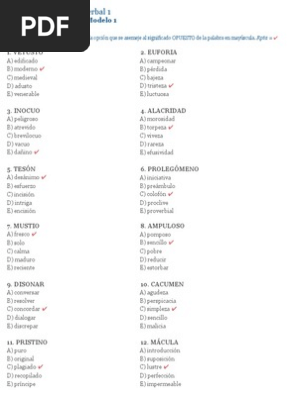 Examen De Ingreso A La U Senescyt Snna Enes Antonimos