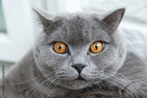 Angry Looking Male Cat With Gray And White Colored Fur