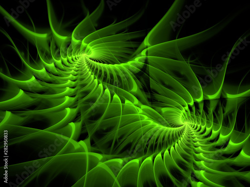 Abstract Colorful Red Green Fractal Lines On Black