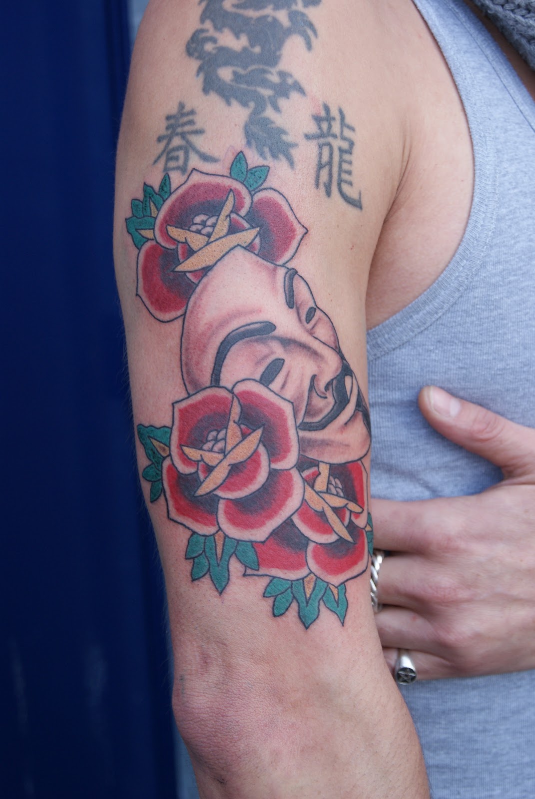 Tjitse De Vries Tattoo Old School Roses And A Guy Fawkes Mask