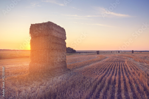 Stacks Of The Grass On A Sunset Stock Image Image Of