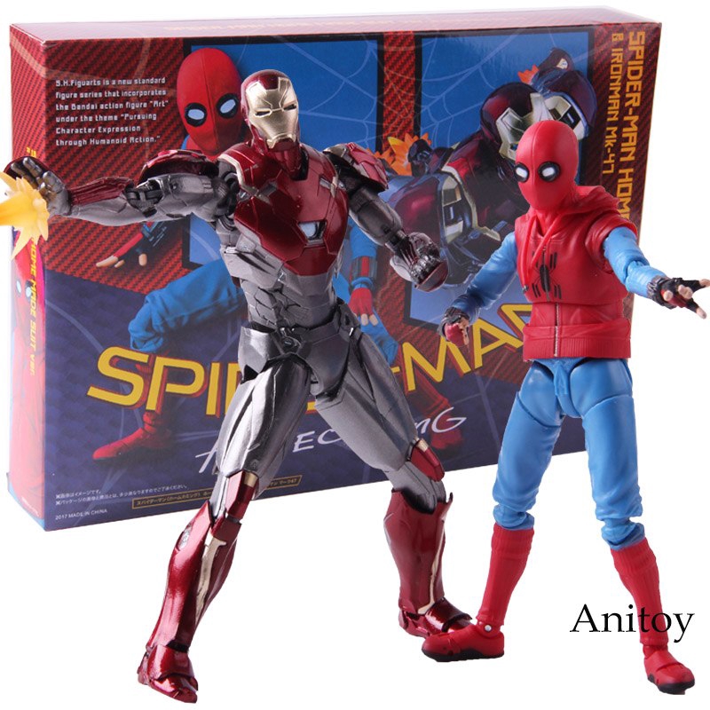 Shf Figuarts Spiderman Homecoming Figure Action Spider Man Home Made Suit Ver Iron Man Mk 47 Collection Model Boys Toys Gift