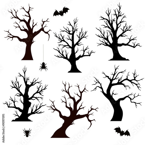 Halloween Trees Spiders And Bats Buy This Stock Vector