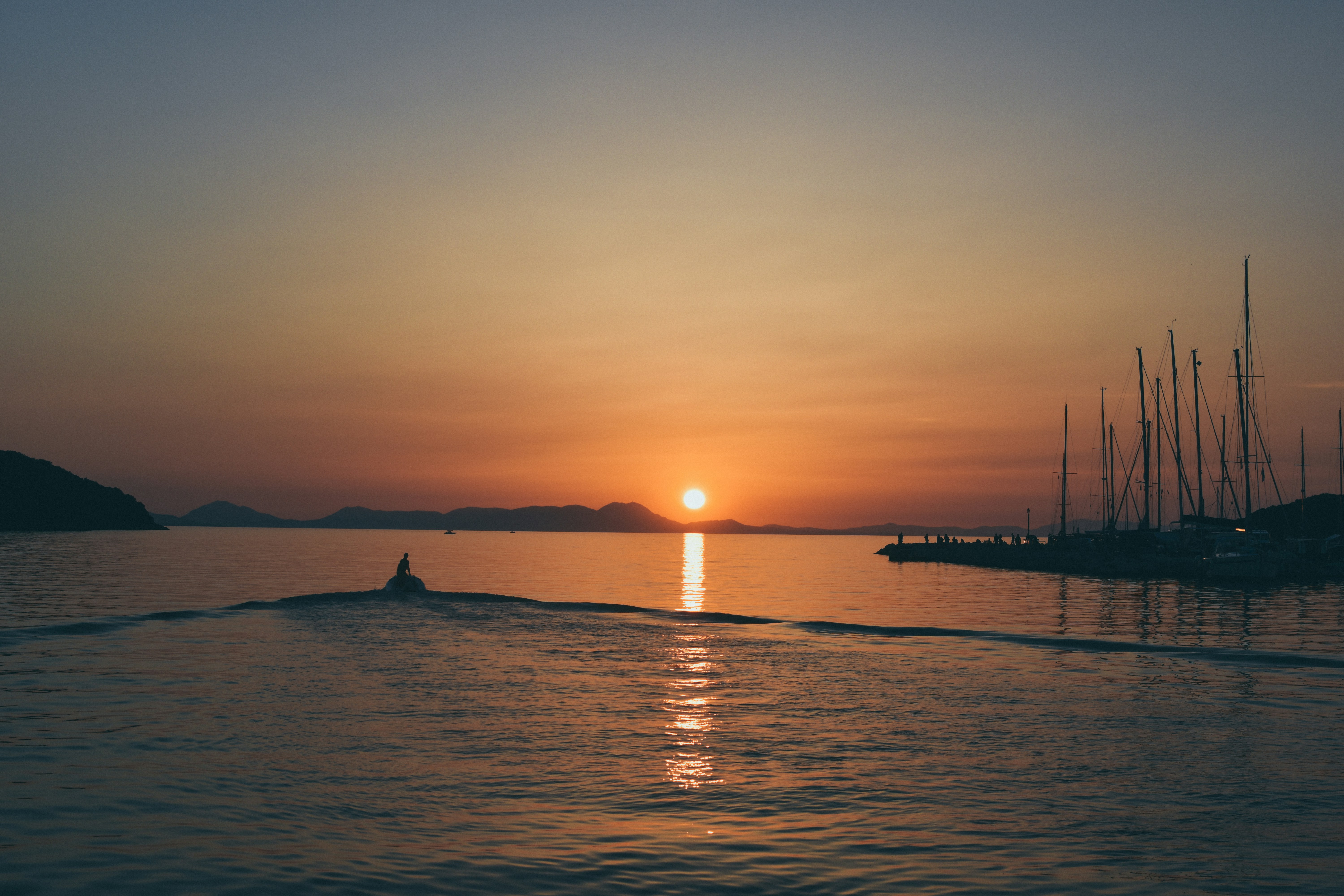 Wallpaper Landscape Colorful Boat Sunset Sea Lake