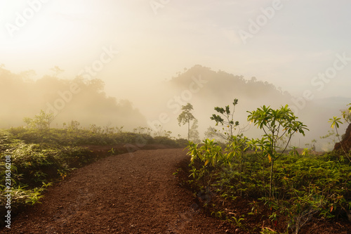 Dirt Road At Krungshing Fog View Point Of Landscape At