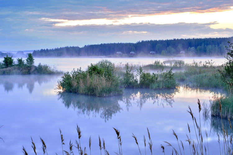 4555798 Fall Calm Lake Water Mist Shrubs