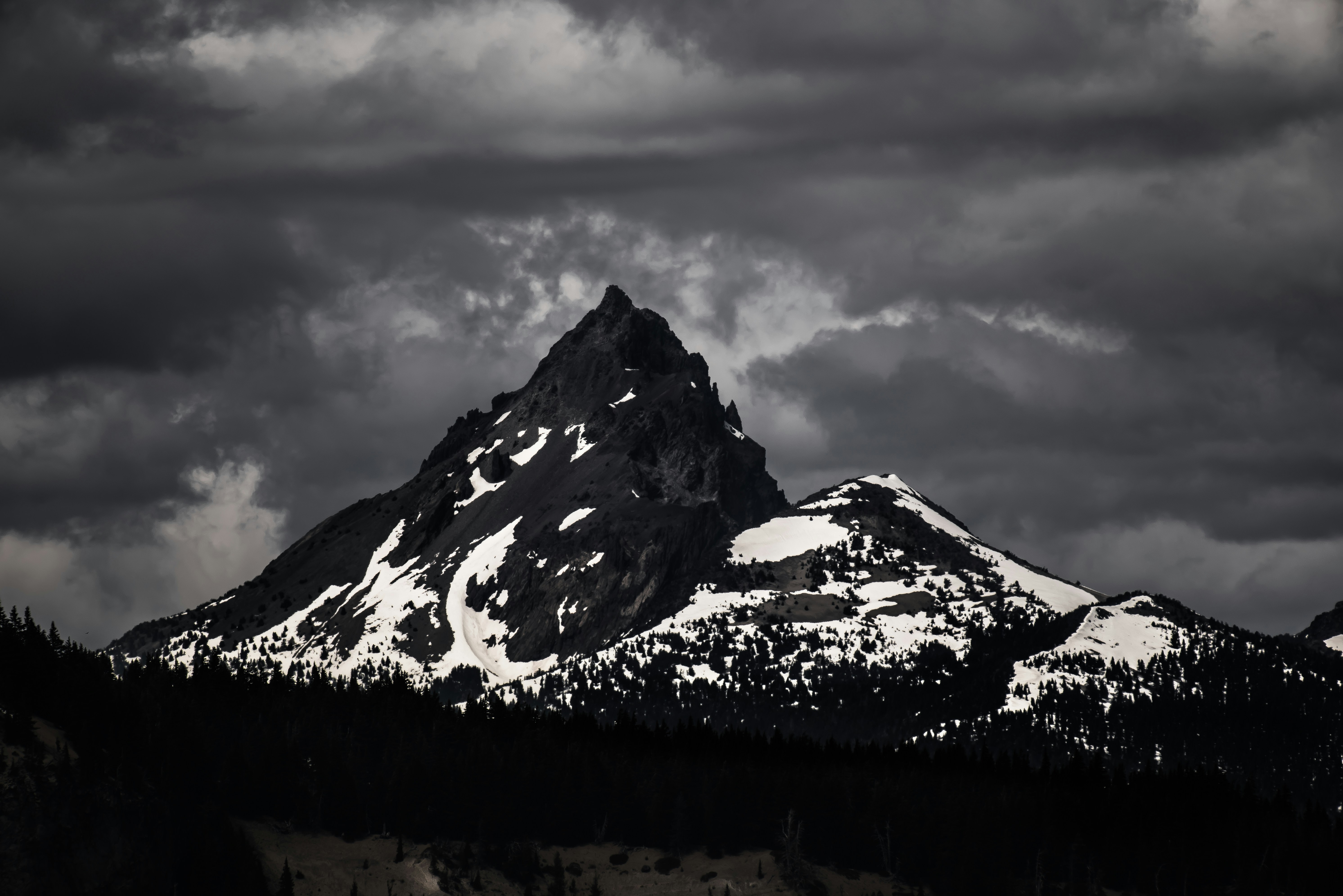 Hd Wallpaper Nature Landscape Snowy Peak Monochrome Forest