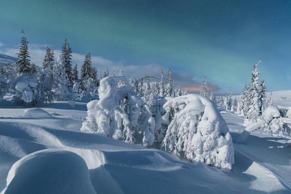 Northern Lights On Frozen Dwarf Shrubs Pallas Yllastunturi