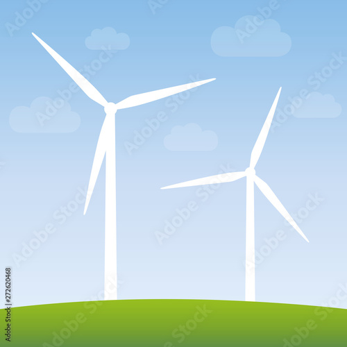 Windmills On Green Nature Landscape Wind Power Energy Vector