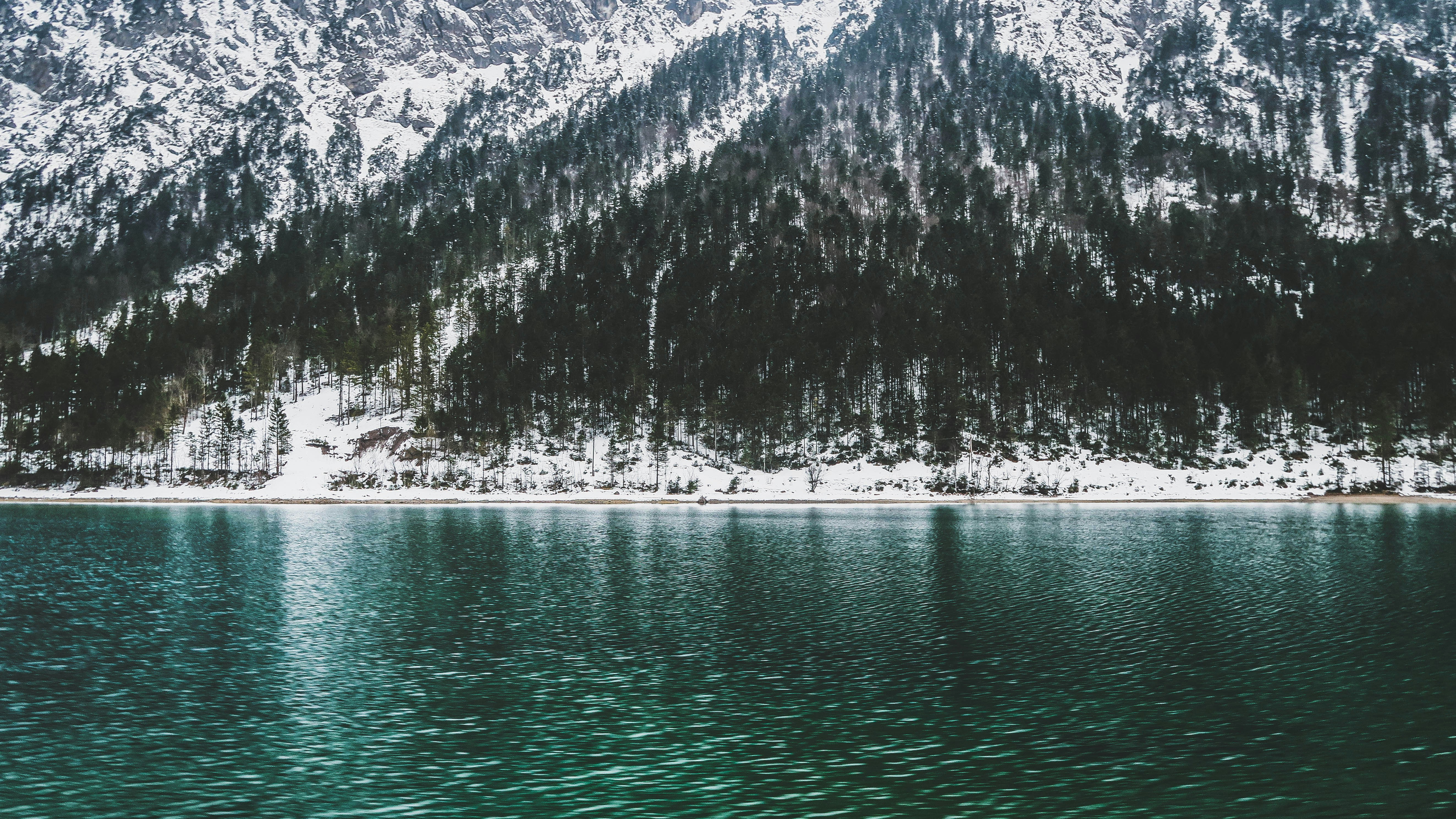 Water Mountains Clouds Landscapes Nature Winter Snow Trees