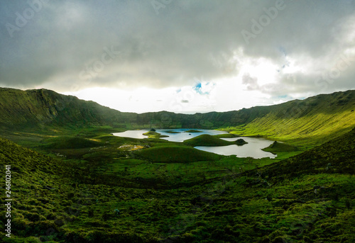 Landscape Sunset View To Caldeirao Crater Corvo Island