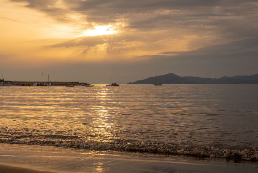 Landscapes Bay Sea Ocean Fjord Clouds Sunset Sunrise