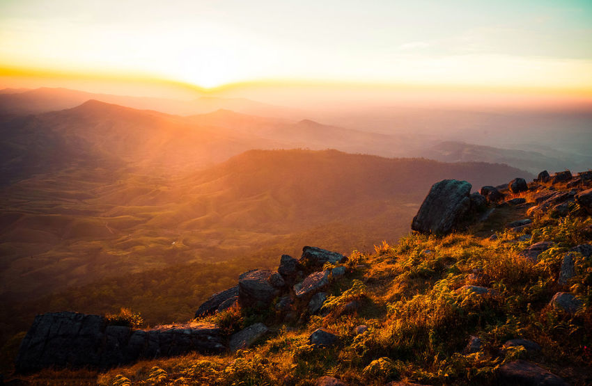 Nature Landscapes Hills Mountains Sunrise Sunset Sky Clouds