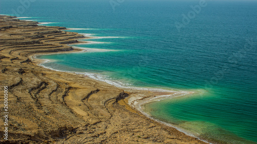 Picturesque Dead Sea Salty Waterfront Shoreline Aerial