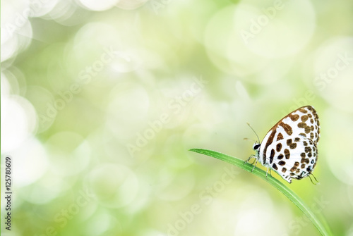 Butterflies Love Perch On Leaf Green And Bokeh Backgroun