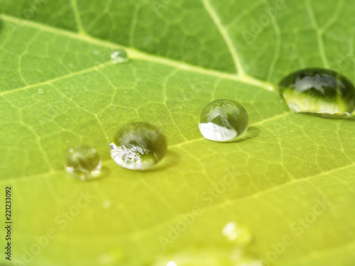 Beautiful Nature Background With Morning Fresh Drops Of Transparent Rain Water On A Green Leaf Drops Of Dew In The Green Leaves Droplets Outdoors In