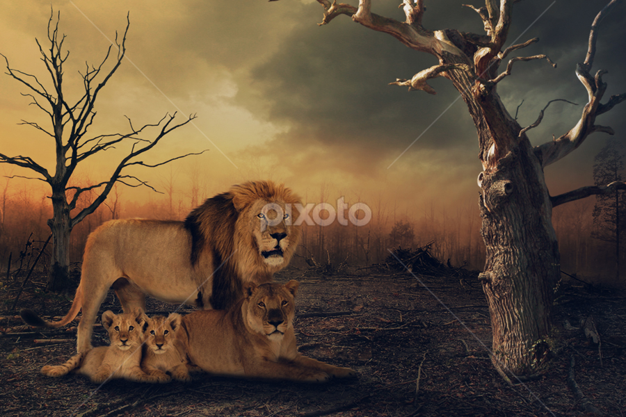 Lion Family Animals Digital Art Pixoto