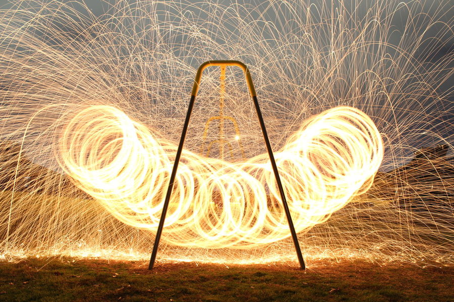 Long Exposure Of Burning Steel Wool Photography At Night