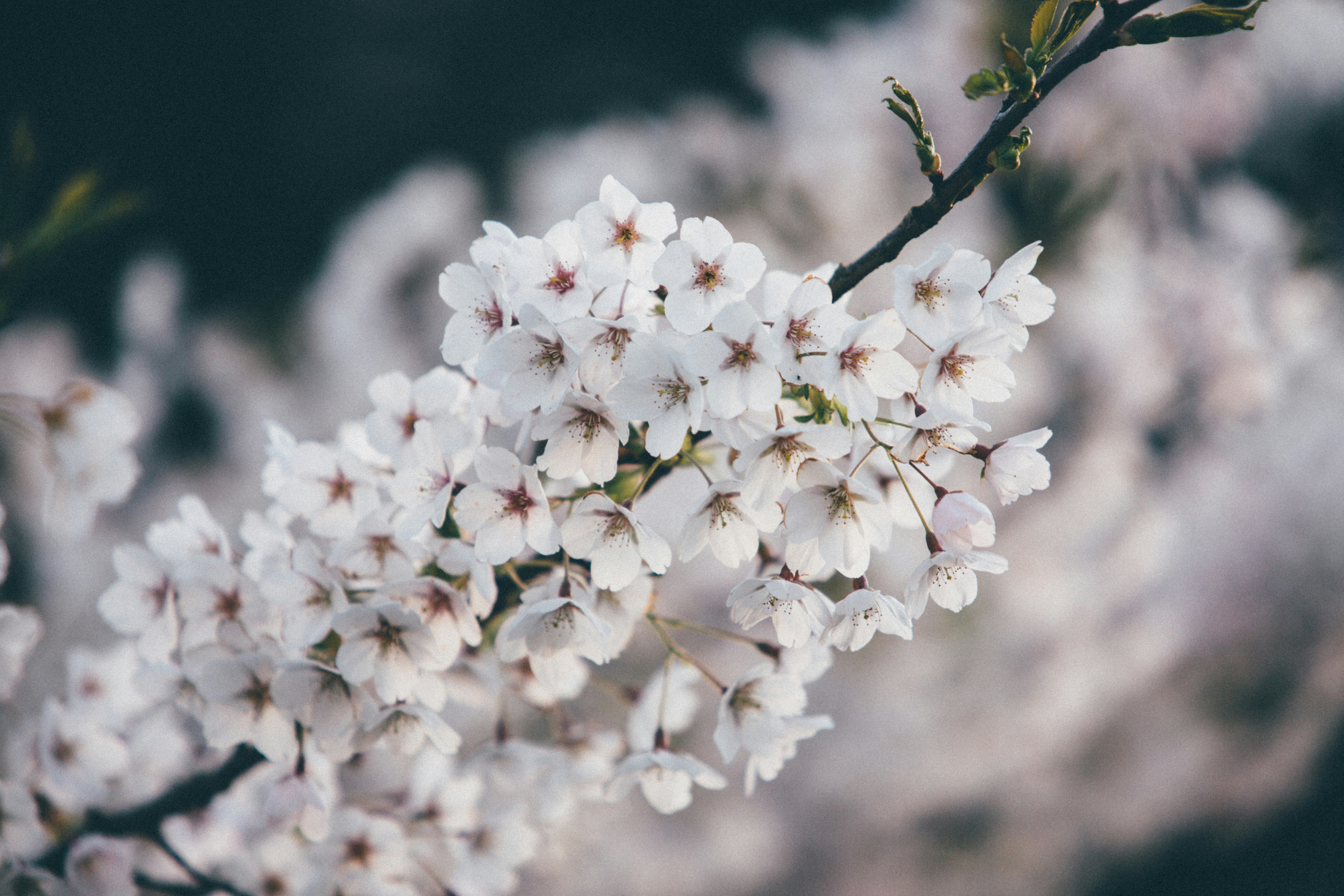 Spring Flowering Cherry White Flowers Close Up Selective