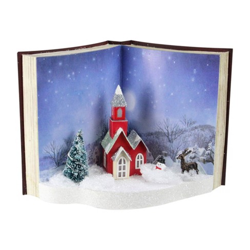 Napco 11 5 White Pre Lit Led Christmas 3d Book Scene Table Top Decoration
