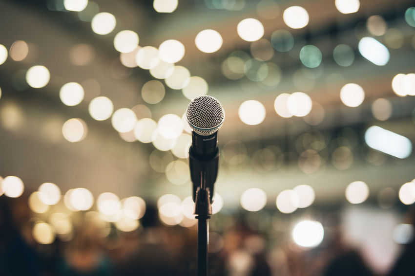Microphone On Stage On A Blur Background Scene Scenery