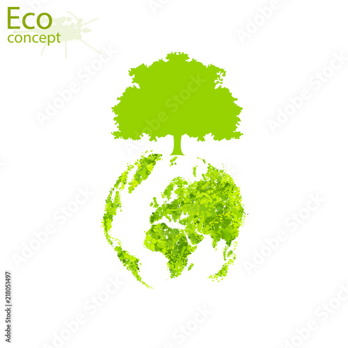 Tree With Globe On White Background Environmentally