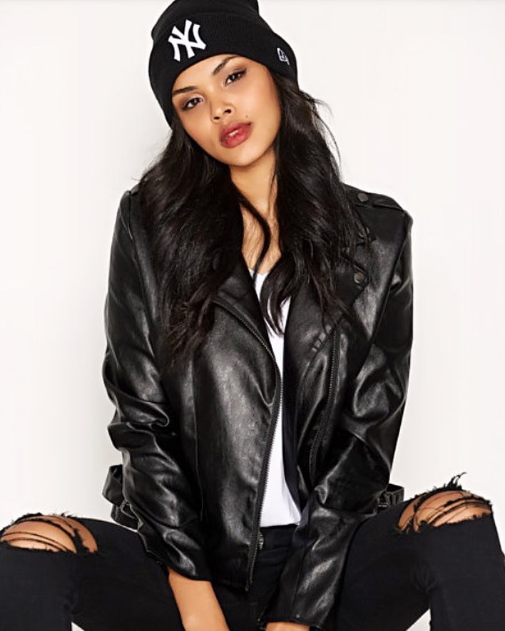 Women S Black Leather Biker Jacket With Zip Pockets