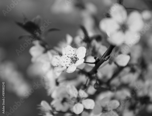 First Blossom And Bare Tree Twigs At Background Spring Begins Blur Andbokeh Selective Focus And Shallow Depth Of Field Black And White Photo Canvas