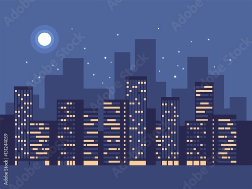 Night City Background Silhouette With Stars And Moon At The