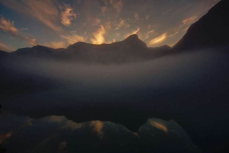 2942374 Mountains Lake Sky Clouds Mist Sun Norway Wallpaper