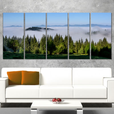 Designart Green Trees And Fog Over Mountains Landscape Canvas Art Print 4 Panels