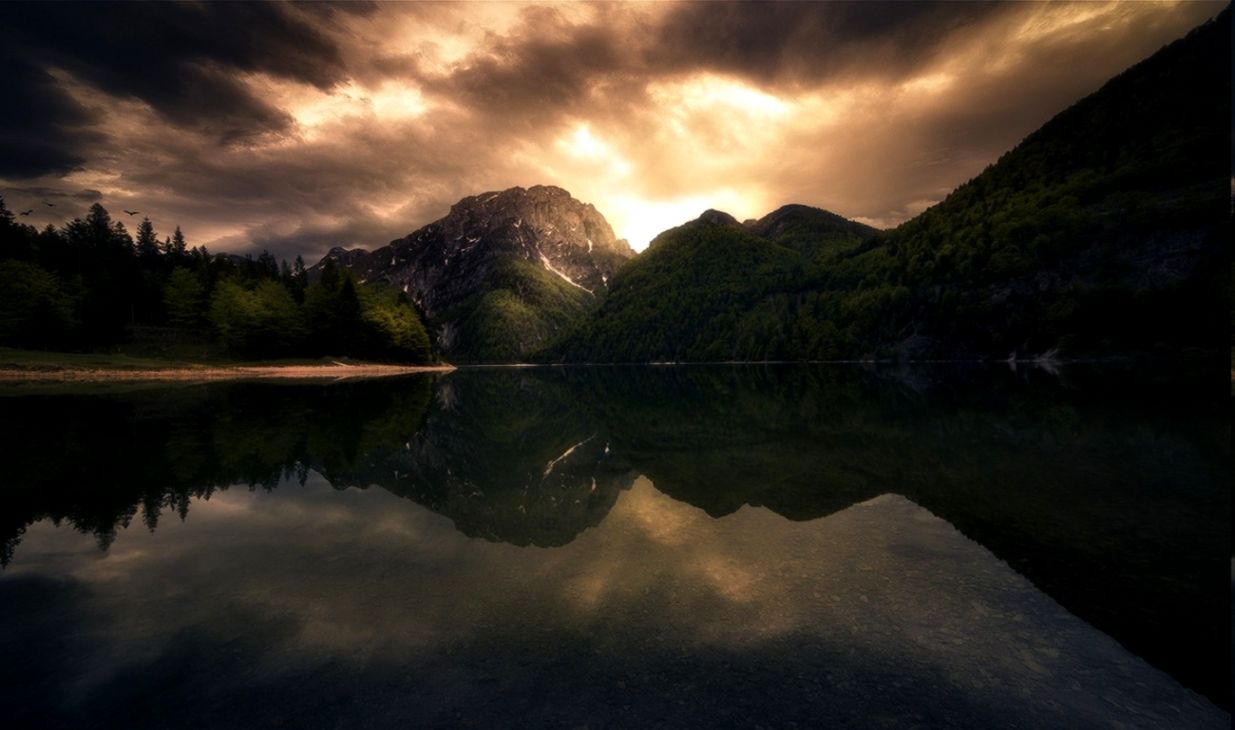 2905317 Photography Nature Landscape Mountains Lake Red Sky
