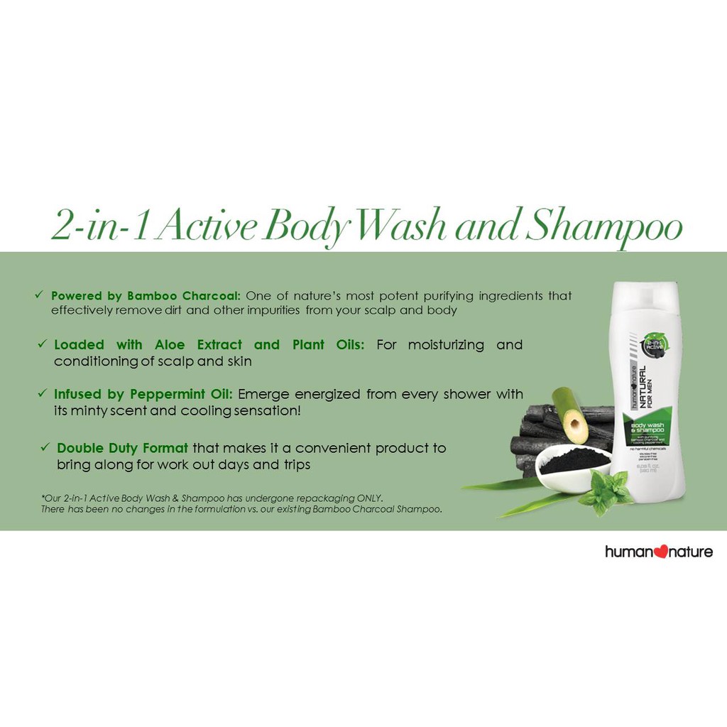 Human Nature Bamboo Charcoal Body Wash And Shampoo For Men