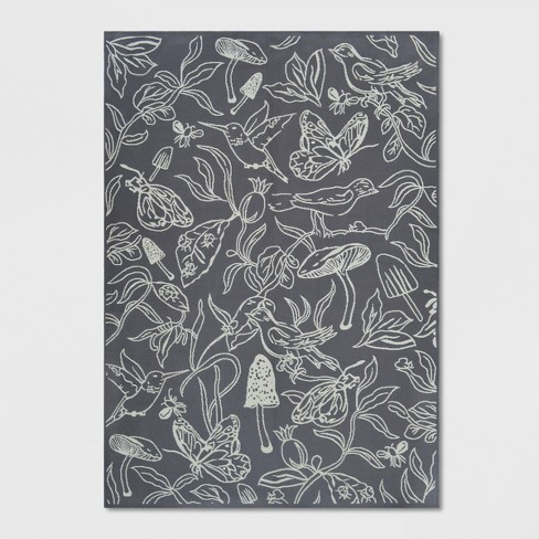 7 X 10 Birds Butterflies Outdoor Rug Charcoal Opalhouse