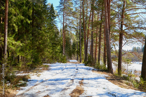 Path Or Small Road In Pine Forest In The Beginning Of Spring