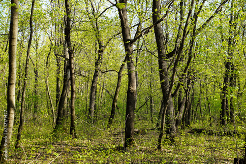 Spring Greenery Forest Trees Trunks Young Foliage