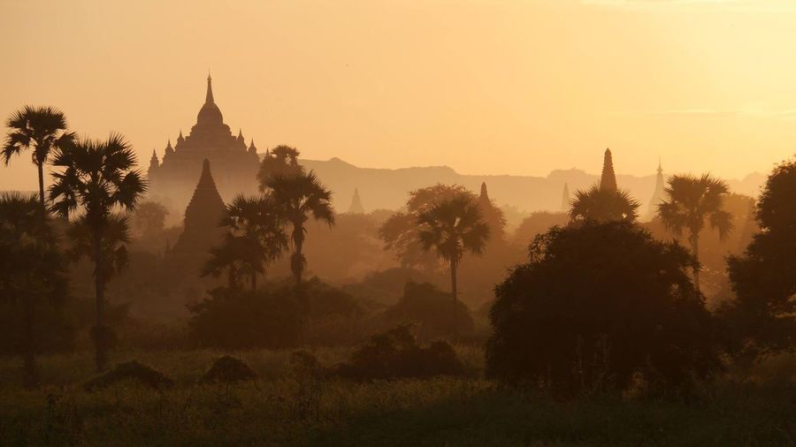 Nature Landscape Bagan Sunrise Temple Mist Blue Trees
