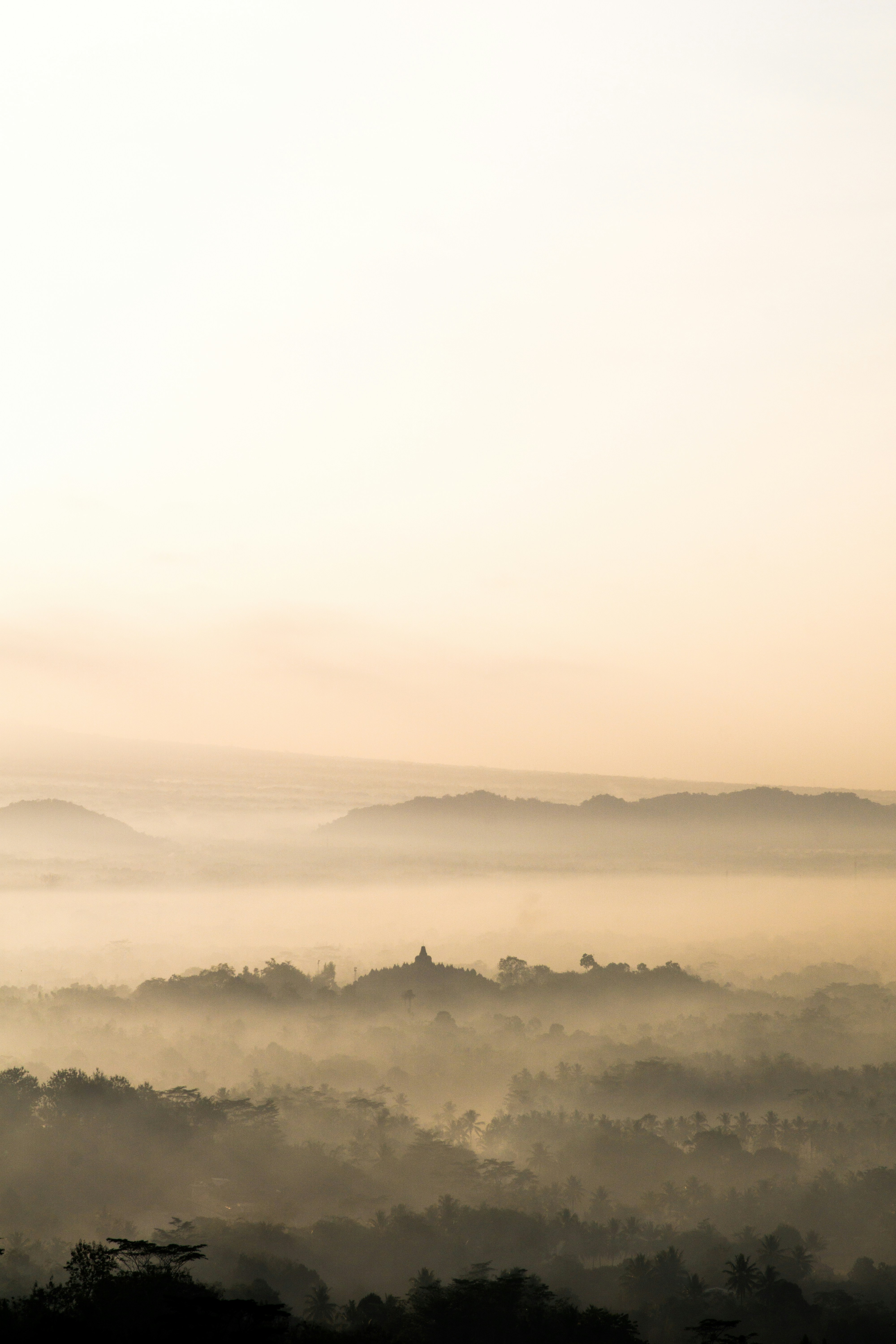 Mist Trees Fields Aerial View Wallpaper